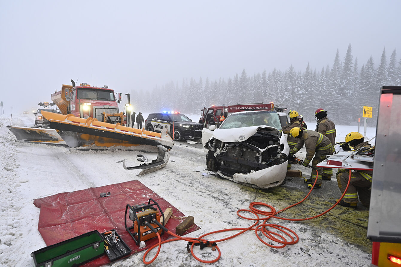 (MISE À JOUR-17H29). Un accident impliquant une déneigeuse, une voiture et un camion a forcé l'intervention des services d'urgence cet après-midi sur la route 138. L'utilisation des pinces de désincarcération a été nécessaire.