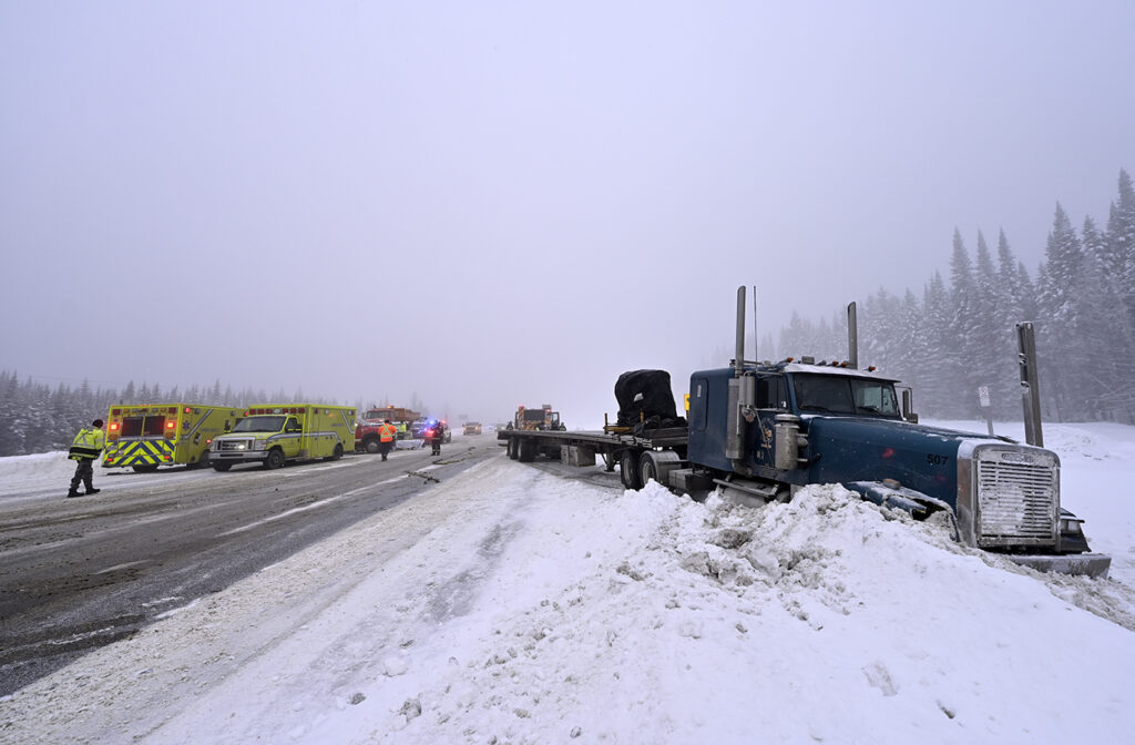 Une semi-remorque s’est également retrouvée dans le fossé à proximité de la scène. On ignore pour l’instant si ce poids lourd a été directement impliqué dans la collision initiale ou s’il a effectué une sortie de route en tentant de l’éviter.