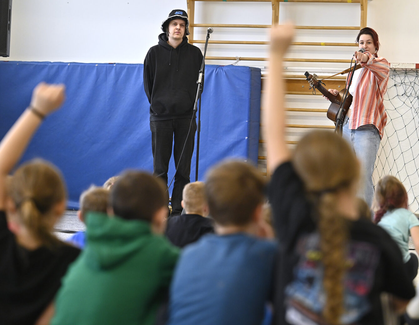 L’enthousiasme des élèves était palpable tout au long de la prestation. À tel point que, lors de la dernière chanson, ils ont été invités à se lever et à danser légèrement, laissant libre cours à leur joie et à leur appréciation. Un véritable moment de communion s’est alors créé entre l’artiste et son jeune public.
