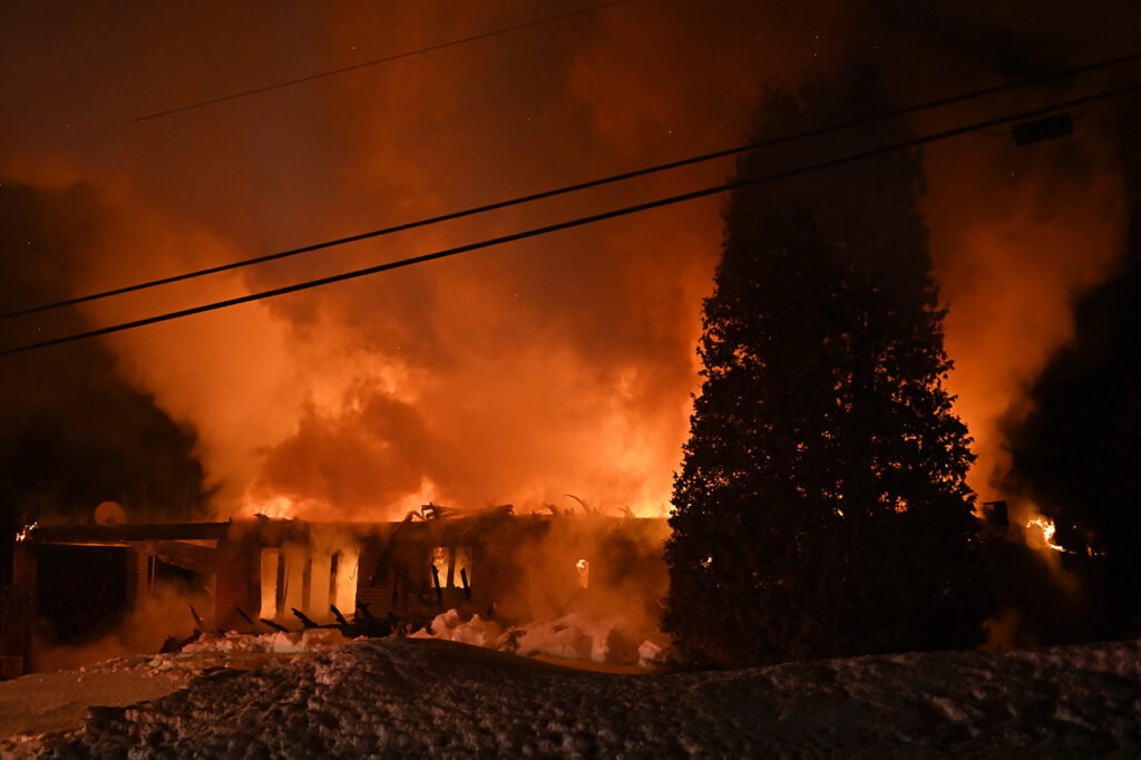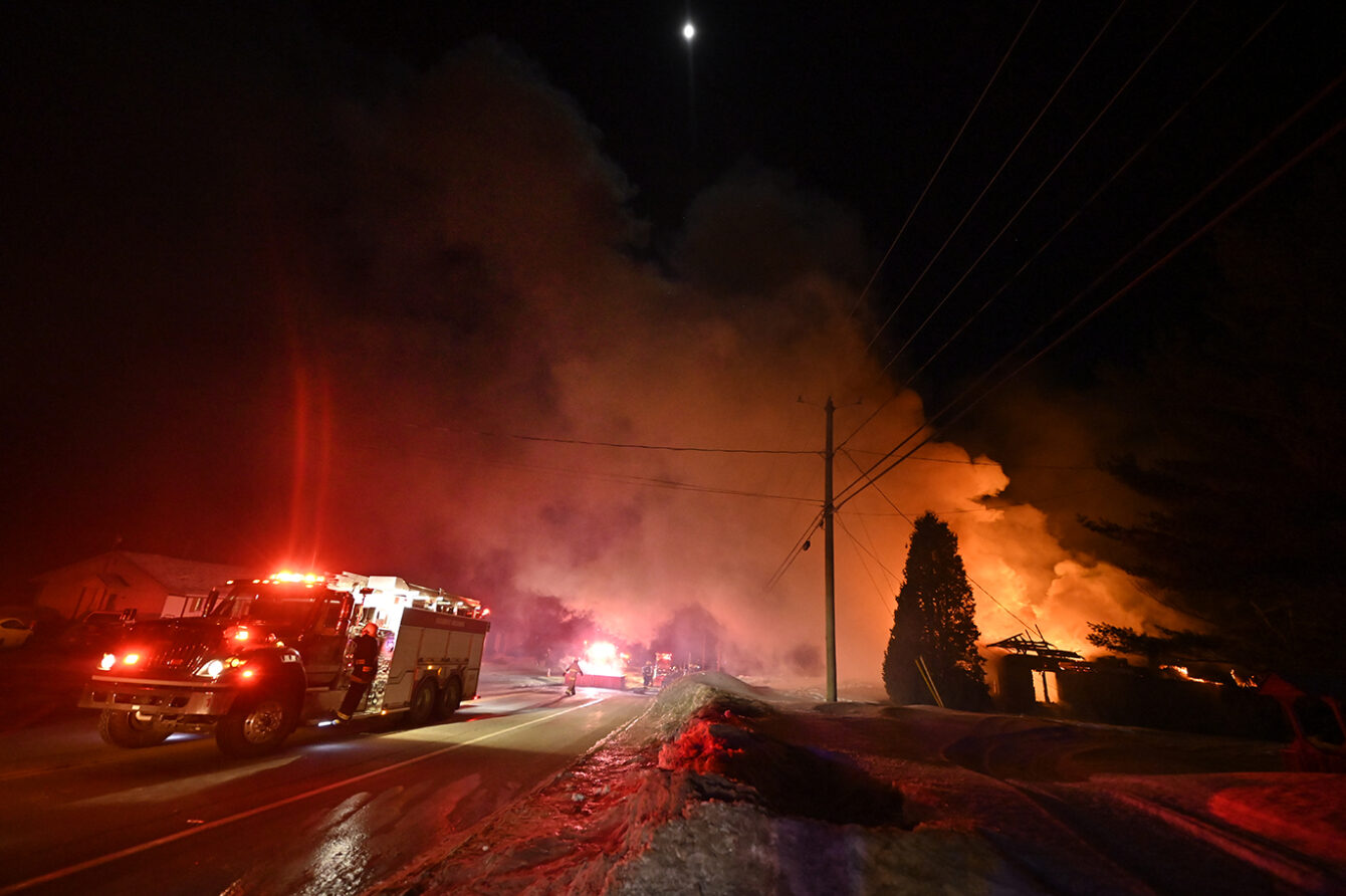 Le brasier s’est déclaré, tard en soirée, dans une maison située sur la route 138 ou rang Saint-George, à proximité de la Meunerie Charlevoix.