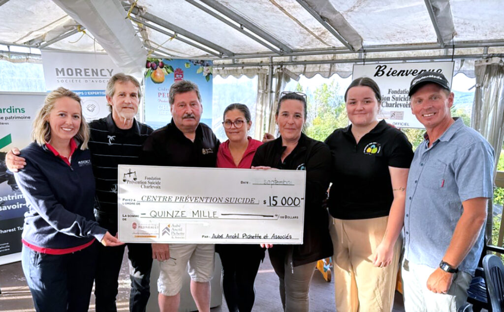 Autre record pour cette 25e édition, 15 000$ pour la Fondation Prévention Suicide de Charlevoix. Photo : Facebook.