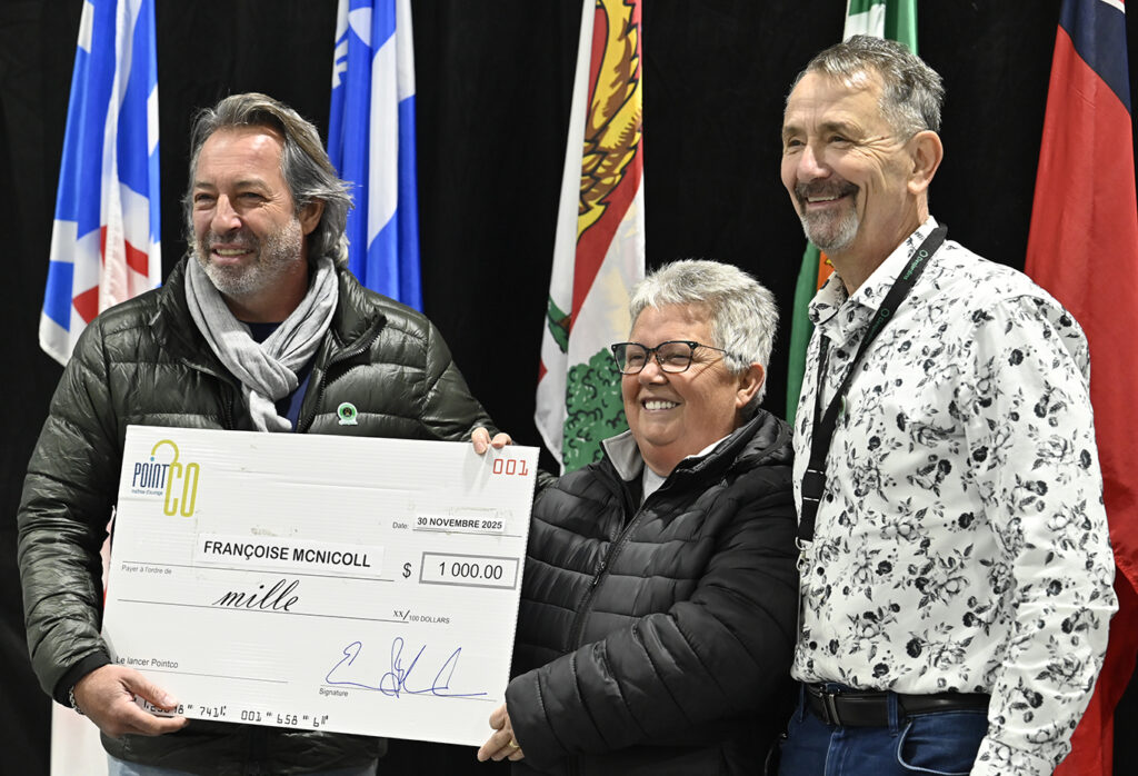 Madame Françoise McNicoll de son côté a gagné 1000$ lors du « Lancer PointCo », une épreuve de précision offrant un prix de 1000$. Photo: Jean-François Desgagnés/MPC