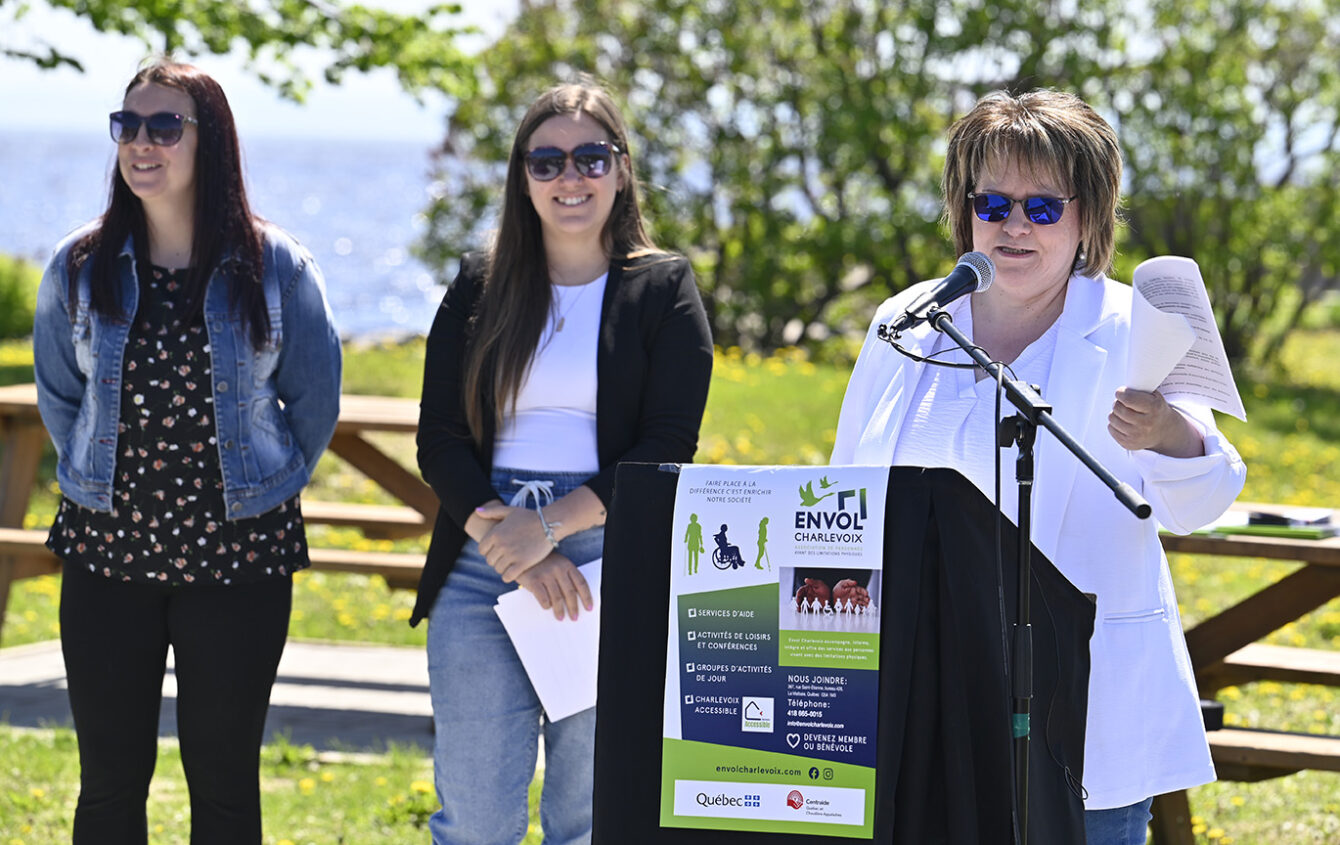 L’inauguration a eu lieu en présence de Michel Couturier, maire de La Malbaie, ainsi que de Sylvie Breton, directrice générale, Joseph Lavoie, président, et Roxanne Houde, éducatrice spécialisée à Envol Charlevoix, accompagnés de partenaires.